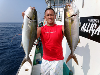 8/05 銭洲 プレミアム仕立 極の会 N会長 モロコ33.15kg ヒラマサ9.45kg 今期最大GETおめでとう御座います! このまま突っ走れるか!? モヒカン宜しくお願いします!