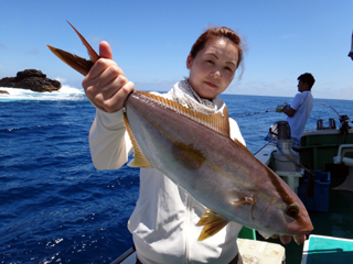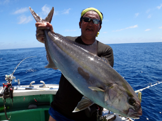 8/03 銭洲 26.5℃ 澄み カンパチ2.25-7.25kg6本、ヒラマサ5.2-8.4kg2本、モロコばらし!!、ルアカン、ルアーアカハタ等 銭洲、暑い!熱い!あつい!夏来る!!! I さん、2年ぶりのカンパチGETおめでとう御座います!