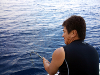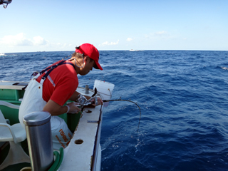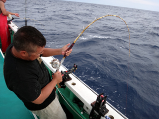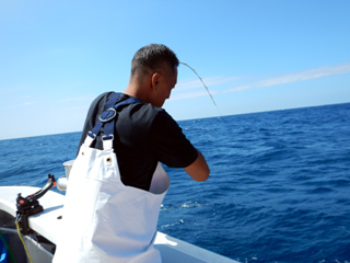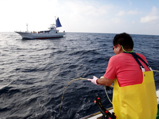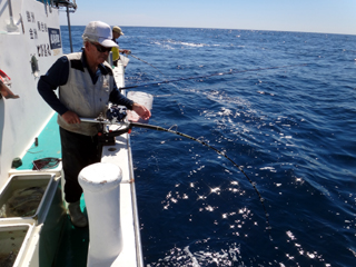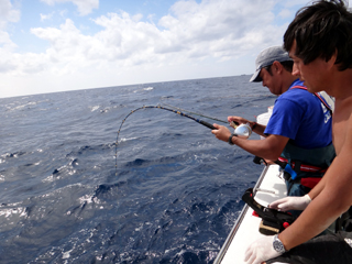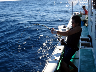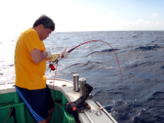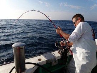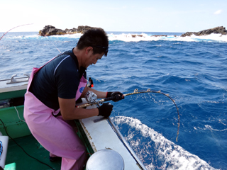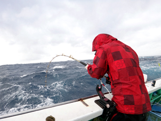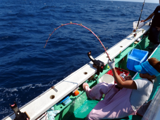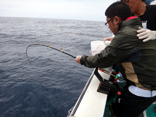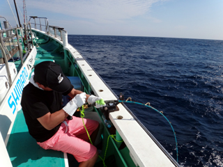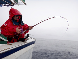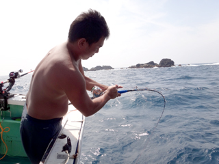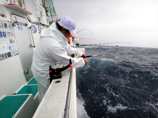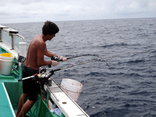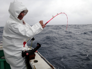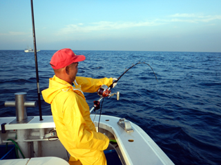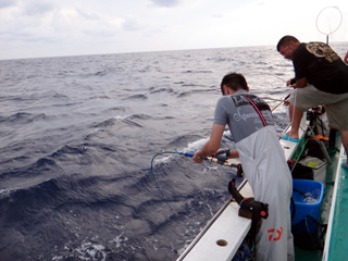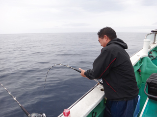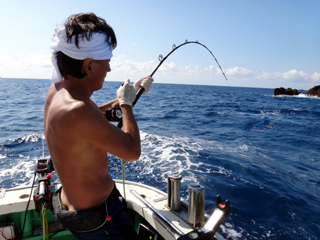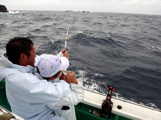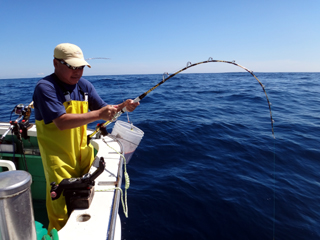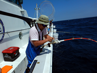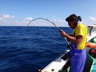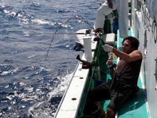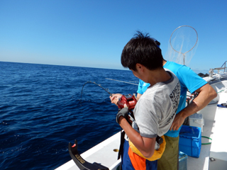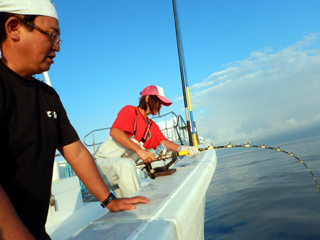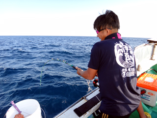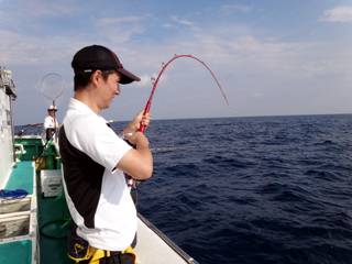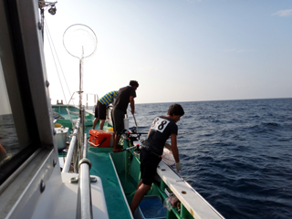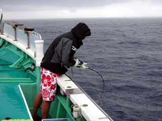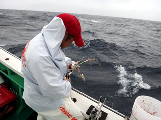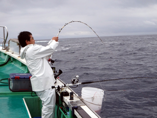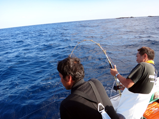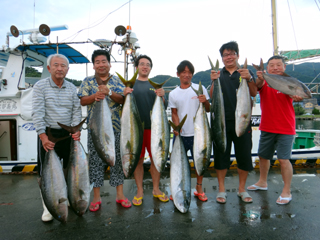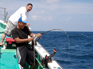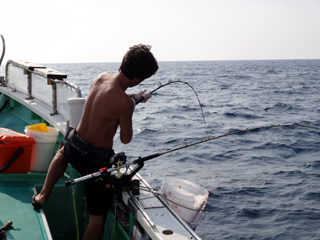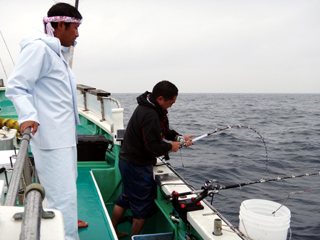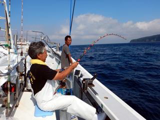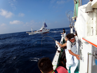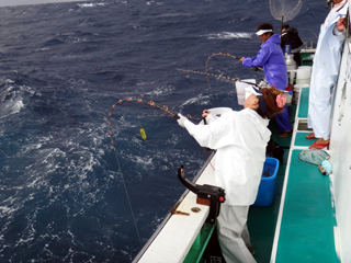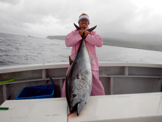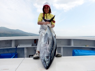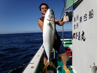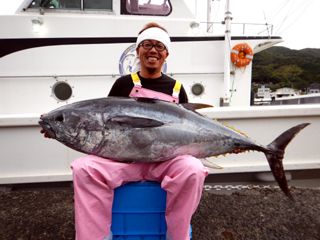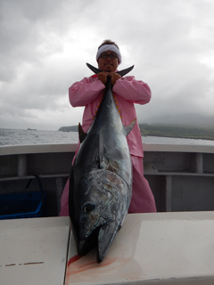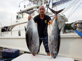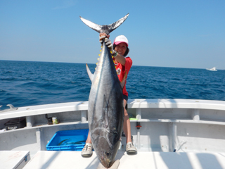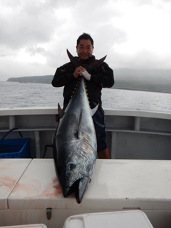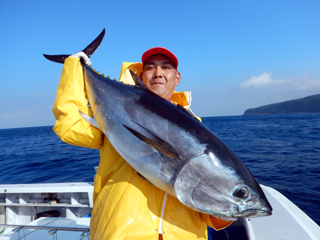 9/08 伊豆半島東沖 25.7℃薄濁り 黒マグロ50.7kg ツムブリ7kg