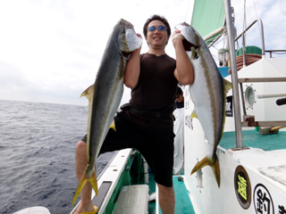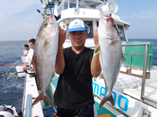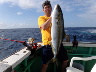 東京都 S様 ヒラマサ15.25kgGETおめでとうございます! 9/27 銭洲 24.9℃ 薄濁り カンパチ2.6-9.9kg0-2計6本、ヒラマサ9.8-15.25kg0-2計3本