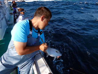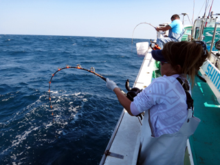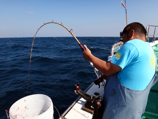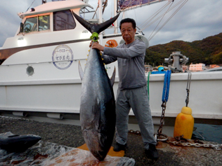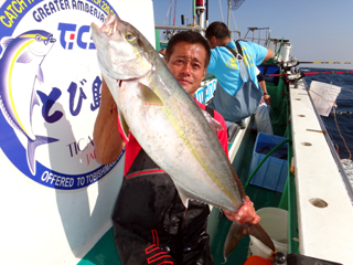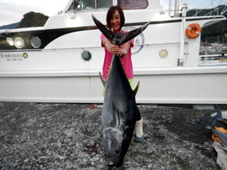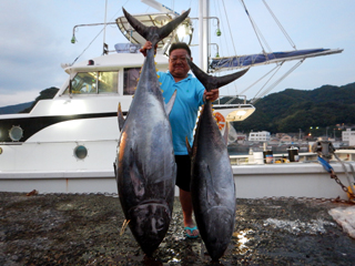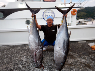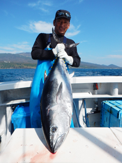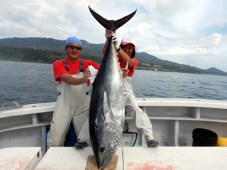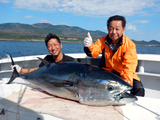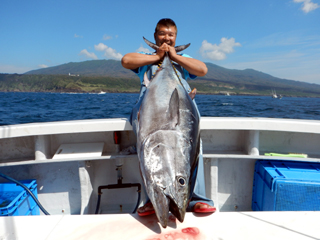 東京都 K様 マグロ82.85kgGET、おめでとうございます! 10/04 伊豆半島東沖 黒マグロ38.9-82.85kg0-2計3本、カンパチ5.15kg |