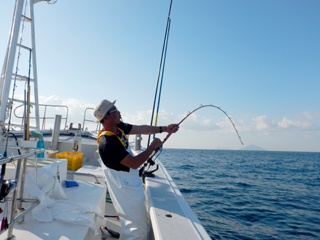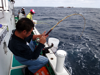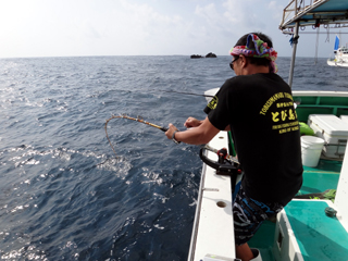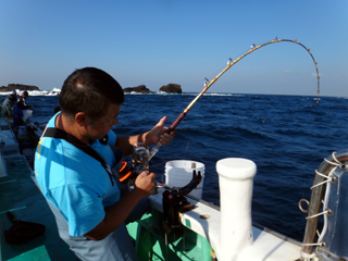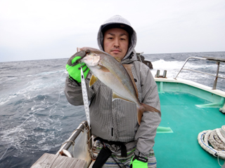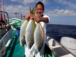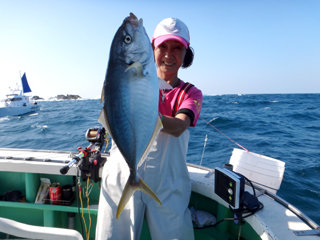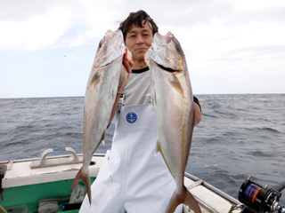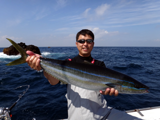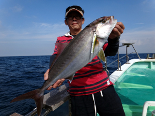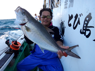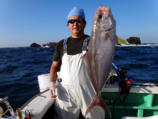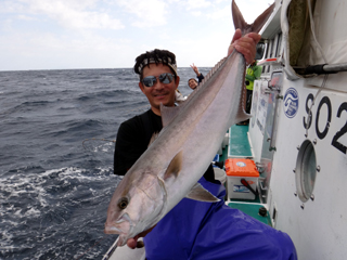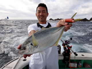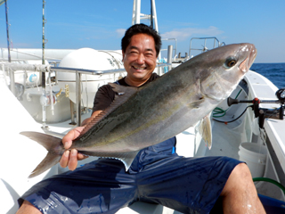 10/19 銭洲 22.0℃ 濁り カンパチ2.55-8.4kg0-3計11、ヒラマサ5.8-14kg0-4計11、ルアーハガツオ3.3-4.1kg計3本、シマアジ1.65kg