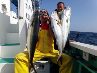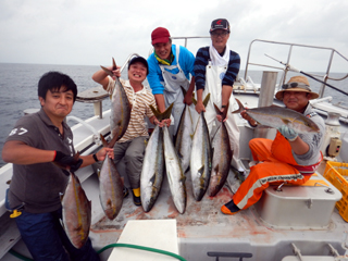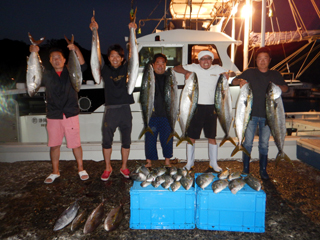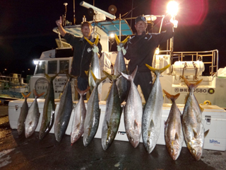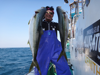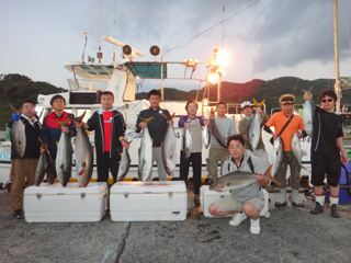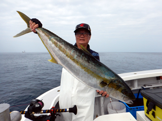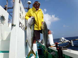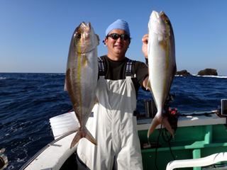 10/12 銭洲 22.6℃ 濁り カンパチ3.5-10.4kg0-2計6本、ヒラマサ7.65-11.6kg計2本、マダイ6.6kg、ツムブリ5.2-5.2kg計2本、シマアジ1.6kg