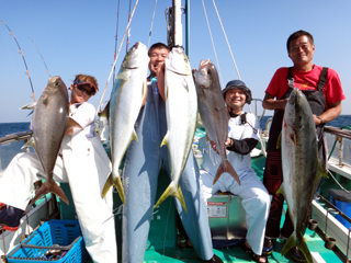10/20 銭洲 WS様仕立て カンパチ1.2-7.2kg0-3計6本、ヒラマサ8.65-14.15kg0-3計7本、ハガツオ3.45kg、シマアジ3.45kg頭計29枚