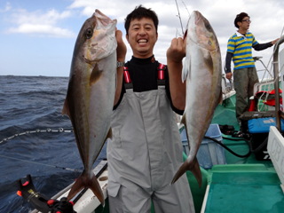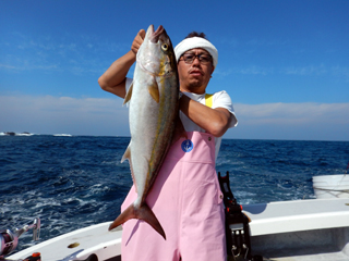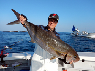 10/10 銭洲 21.9℃ 濁り カンパチ3.3-7.5kg0-1計3本、ルアーカンパチ3.5kg、シマアジ2.85kg、ツムブリ5.8kg