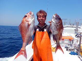 5/23 石花海大鯛狙い マダイ1.55-6.75㎏2枚! 伊勢原市M様 自己記録更新マダイ6.75㎏!おめでとう御座います。(^O^)/