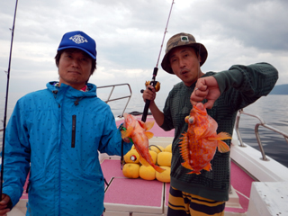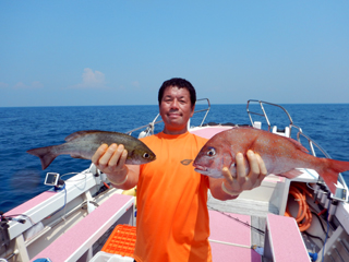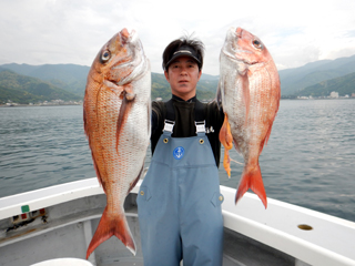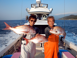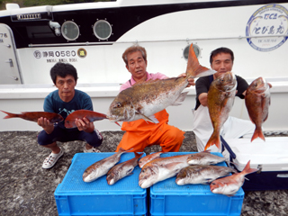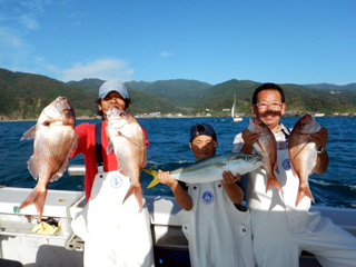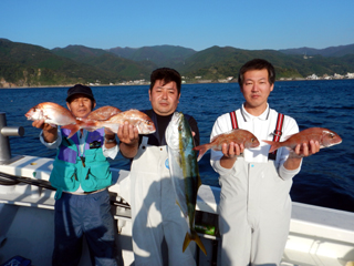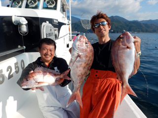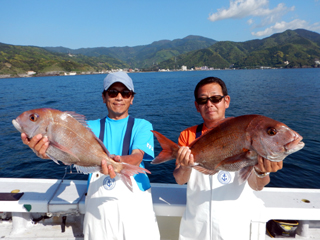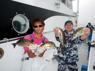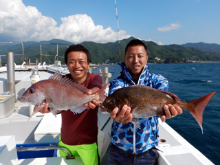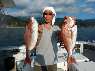 9/12 土肥沖 マダイ0.5-1.0kg1-2計6枚、ワラサ2.55-3.05kg計4本