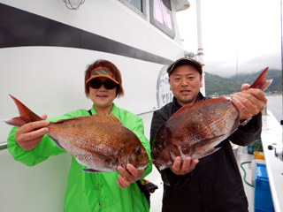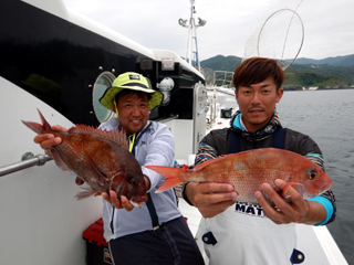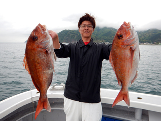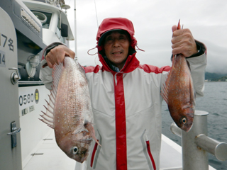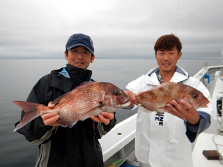 6/09 土肥沖 マダイ1.2‐1.4㎏2枚! 反応バリバリなのにまだ潮直らず…(>_<) お疲れ様でした。m(__)m