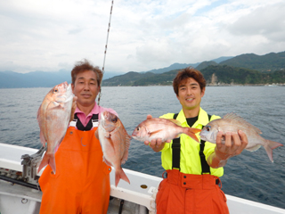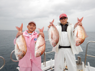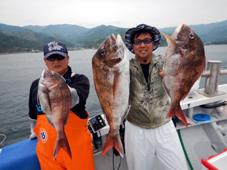 5/09 土肥沖 マダイ0.5‐2.9㎏0-4計22枚! 富士市N様&M様4枚&2枚! F名人今日も絶好調! 藤沢市Y様マダイ2.9㎏!