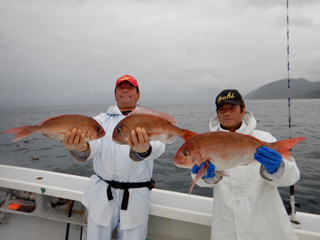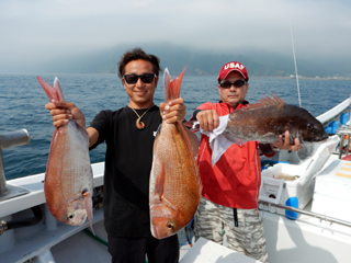 5/31 石花海大鯛狙い 二枚潮キツク苦戦(>_<) マダイ1.1‐2.7㎏0‐3計6枚! 横浜市O様マダイ3枚GET!