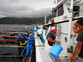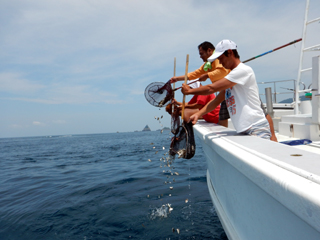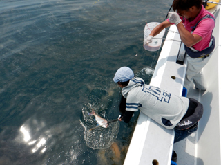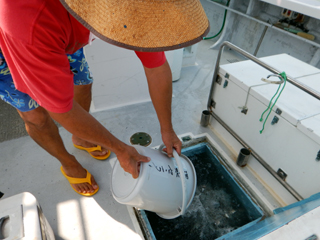 7/23 真鯛稚魚放流 県の補助による真鯛稚魚放流! 土肥の漁師さん達と土肥沖へ11000匹放流しました! 防波堤や磯際で真鯛の稚魚が釣れたら逃がしてあげて下さい。m(__)m