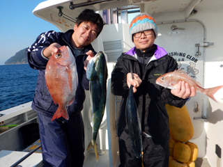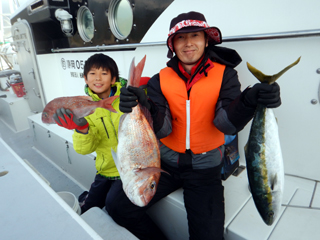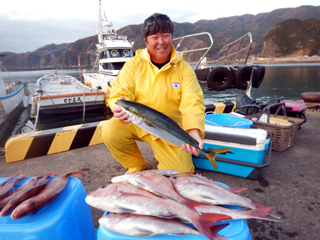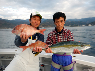 12/10 土肥沖 マダイ0.5-2.3kg1-5計14枚、イナダ・ワラサ3.35kg頭計4本