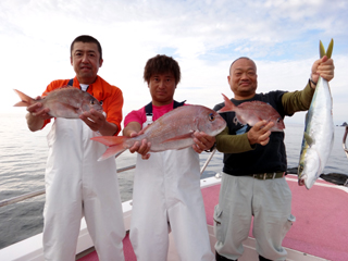 11/10 土肥沖 20.4℃ 濁り マダイ0.7-2.0kg1-3計7枚、ワラサ4.3kg