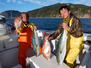 10/31 土肥沖 マダイ0.45-2.5kg0-3計14枚、ワラサ5.15kg頭計4本、イナダ計19本