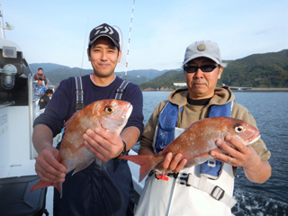 10/29 土肥沖 20.8℃ 薄濁り マダイ0.5-3.35kg2-3計9枚