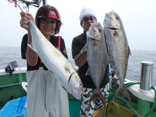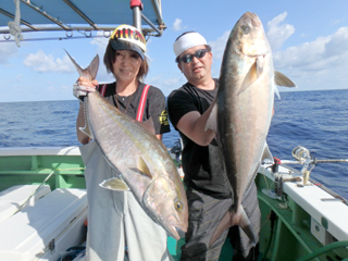 06/10 銭洲 20.5℃薄濁り カンパチ7.8-12.8kg0-1計4本、ヒラマサ15.5kg、マダイ1.75-2.6kg計6枚