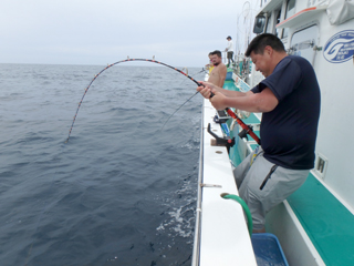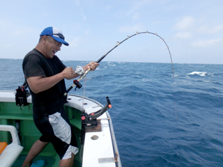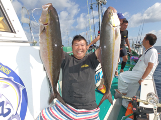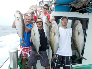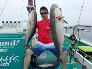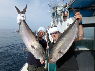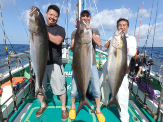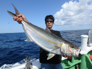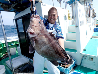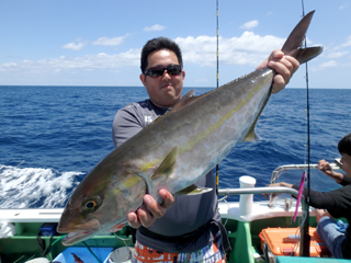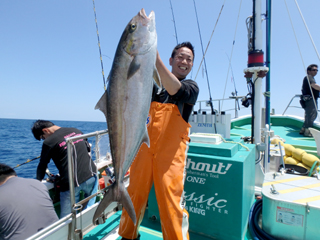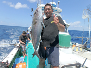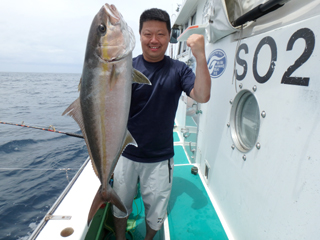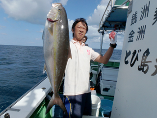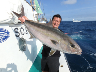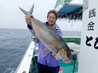 愛知県A様カンパチ21.5kgGETおめでとうございます! 06/03 銭洲 21.5-22.0℃薄濁り カンパチ4.35-21.5kg1-5計31本、マダイ4.4kg、ルアーマグロ2.65-3.8kg0-2計4本 とび島丸トップペ-ジ 2016/06/03-06/27 Photo 過去 戻る