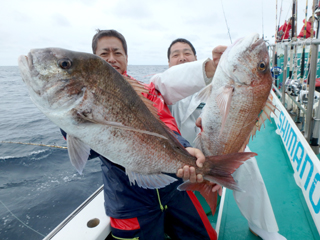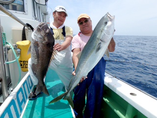 06/27 銭洲 22.0℃濁り ヒラマサ6.25kg1本、ウメイロ五目35-40cm級15-30枚、マダイ2.0kg級1枚