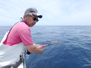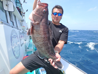 横浜市M様、カンパチ23.4kgGETおめでとうございます! 06/18 銭洲 22.8℃澄み カンパチ9.8-23.4kg0-1計2本、ハタ5.2kg、マダイ1枚