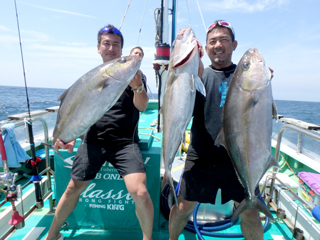 06/22 金洲 23.3-23.7℃澄み カンパチ3.0-6.9kg計6本、キメジ2.35-3.1kg計2本、イサキ15枚 06/20 銭洲 22.7℃薄濁り ウメイロ、イサキ、ルアーキメジ2.5kg