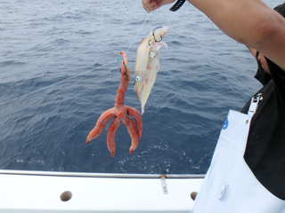 06/07 銭洲 21.3℃澄み 極の会 赤イカ作戦 カンパチ2.4-7.5kg0-2計7本、マダイ7.1kg1枚、メダイ5.5kg1枚