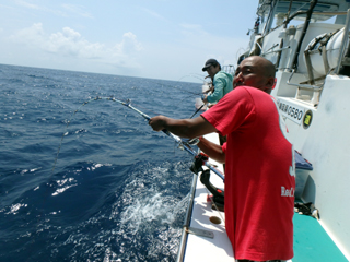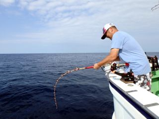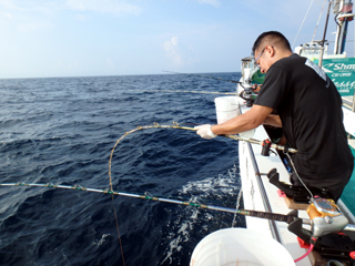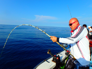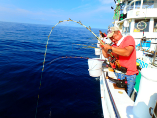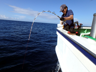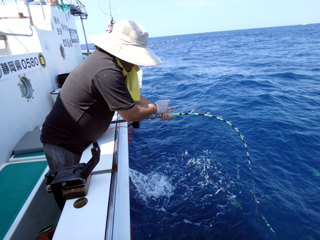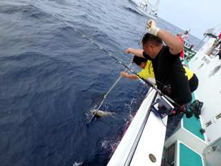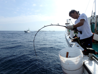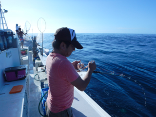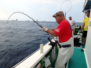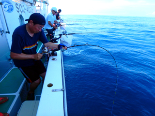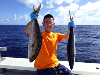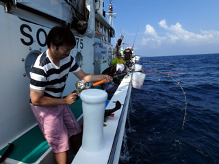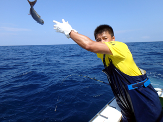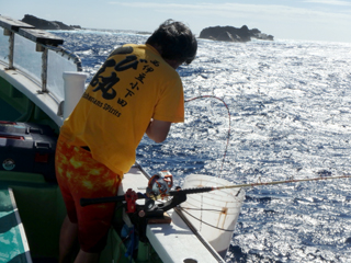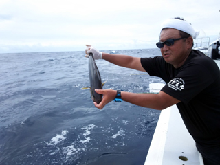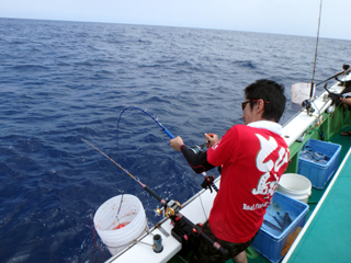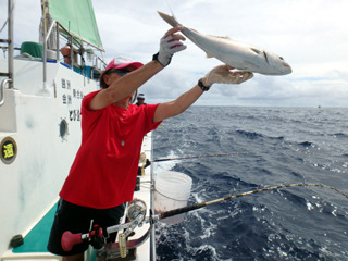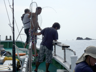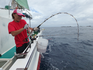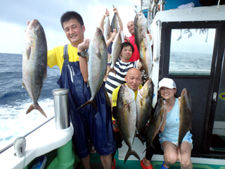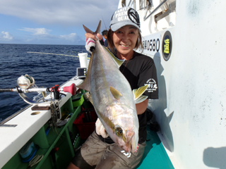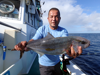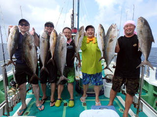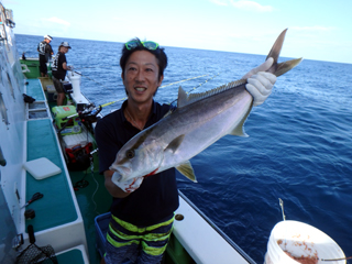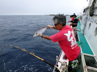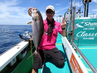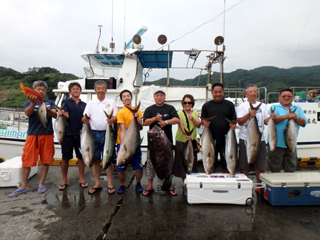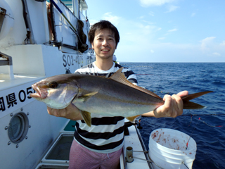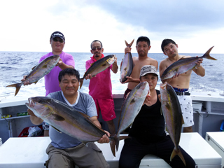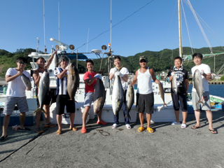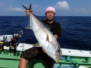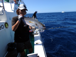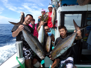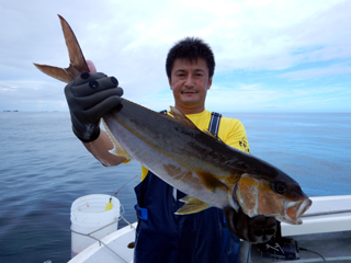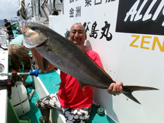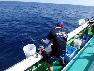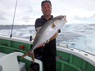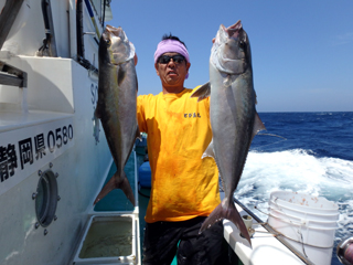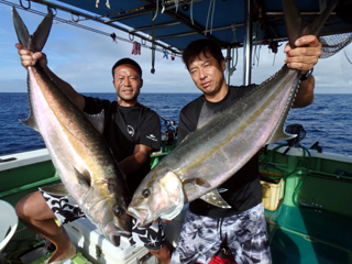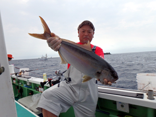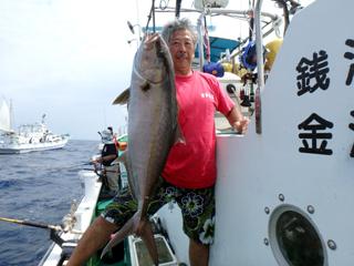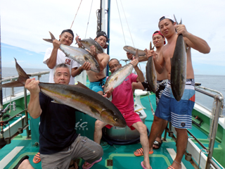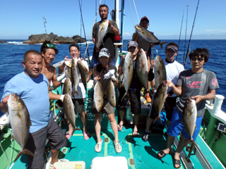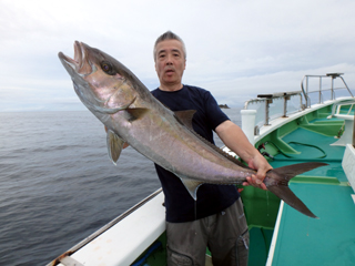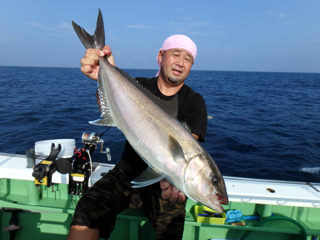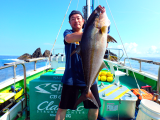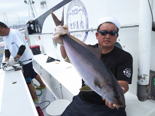 08/09 銭洲25.3℃薄濁り 極の会仕立 カンパチ4.2-7.45kg計6本、ハガツオ3.7kg