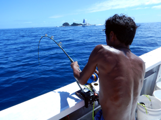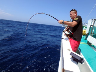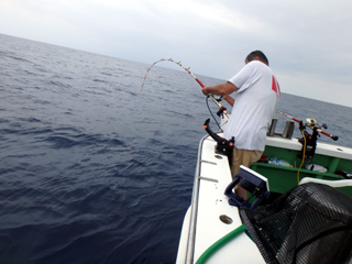 08/04 銭洲26.5℃澄み カンパチ1.8-12.05kg0-4計13本、ハガツオ5kg級0-1計2本