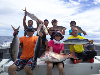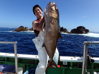 08/15 銭洲 28.4℃澄み カンパチ2.45-7.0kg0-2計7本、ウメイロ五目28-40cm級頭15枚
