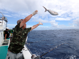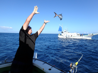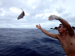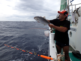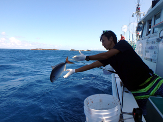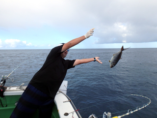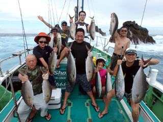 08/13~14 大人の遠足part⑤ 銭洲26.4℃澄み-イナンバ29.4℃澄み-銭洲27.2℃澄み カンパチ2.35-15.6kg0-2計12本、ヒラマサ5.8kg1本、カンナギ19.5kg1本(小型放流)、ハガツオ4本、ウメイロ ルアーカンパチ1.25kg、ルアー赤ハタ、ルアーツムブリ