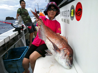 08/12 銭洲26.4℃澄み カンパ2.3kg1本、マダイ5.1kg1枚、ウメイロ