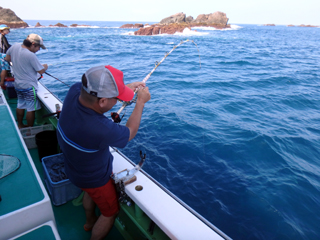 10/29 銭洲 22.1℃薄濁り カンパチ4.2-32.85kg0-3計7本、ヒラマサ13.85kg1本、ハガツオ4-6kg級0-1計4本 出ましたカンパチ30kgオーバーおめでとうございます!銭洲最高!まだまだこれからです!