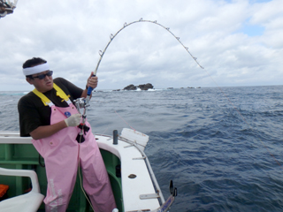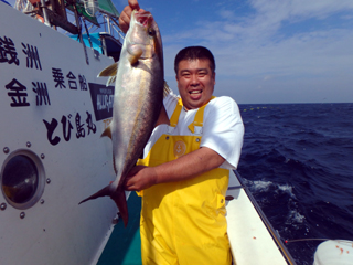 10/01 銭洲 25.4℃薄濁り カンパチ3.05-7.6kg0-2計4本、ツムブリ1.0-4.0kg級23本、ウメイロ五目30cm級0-19枚 とび島丸トップペ-ジ 2016/10/01-10/31 Photo 過去 戻る