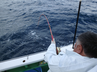 10/13 銭洲 23.8℃濁り カンパチ3.8kg0-1計1本、ウメイロ五目30cm級6-42枚、ツムブリ1-4.9kg0-4計10本、ヒメダイ