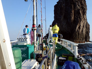04/02 銭洲 16.2℃澄み加減 ルアーカンパチ1.65-3.05kg1-6計14本、ルアーヒラマサ3.75kg0-1本、メダイ6.6kg1本、シマアジ、ヒメダイ、ウメイロ 銭洲解禁!航海安全!銭洲釣行安全祈願! 記念する日にご同行くださった皆さん。有り難う御座いました。 とび島丸トップペ-ジ 2017/04/02-04/29 Photo 過去 戻る