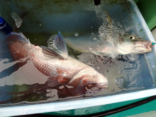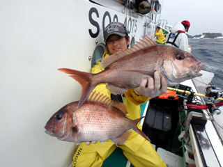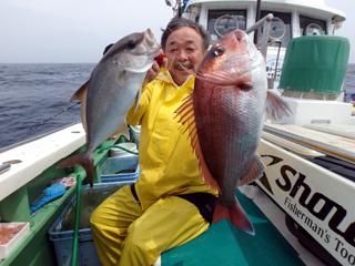 04/04 銭洲 16.1℃薄濁り カンパチ、マダイ1.35kg、メダイ4.65-4.75kg、シマアジ、イサキ、ウメイロ 天気良く、のんびり楽しめました。