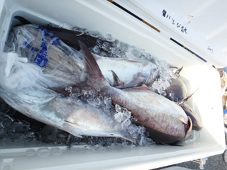 05/03 イナンバ 18.3℃薄濁り カンパチ1.3-1.7kg0-1計5本、メダイ3-5kg級0-6計24本、シマアジ1.1kg1枚 海の動きにクラクラです。海が凪てたので、気持ち良く釣りが出来ました^ ^