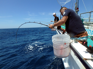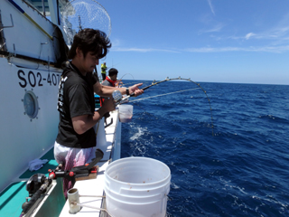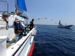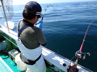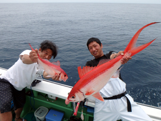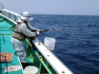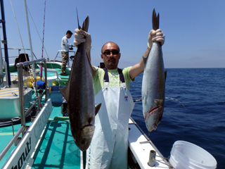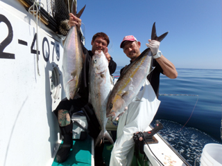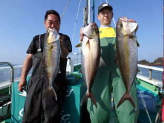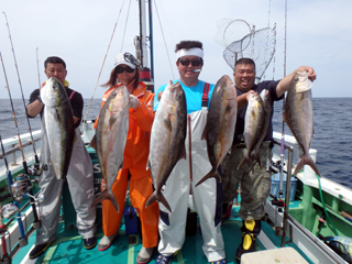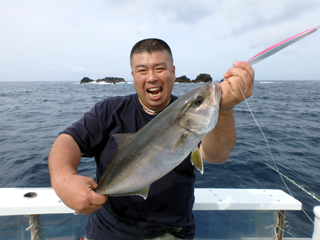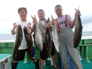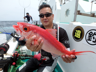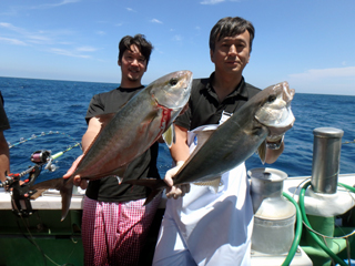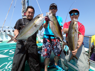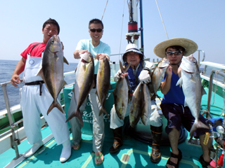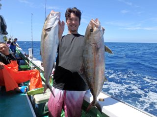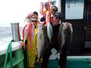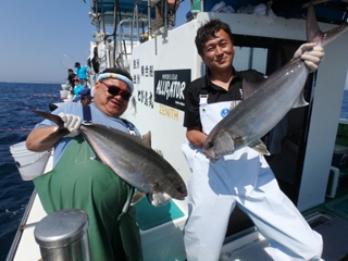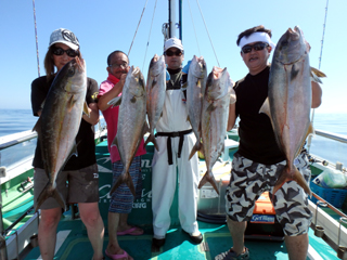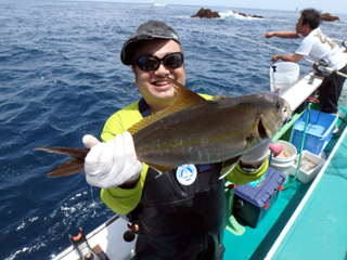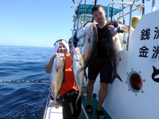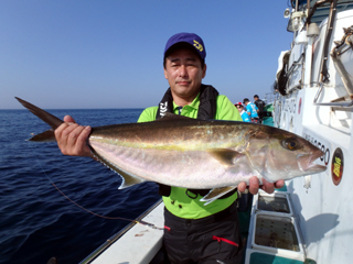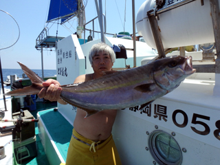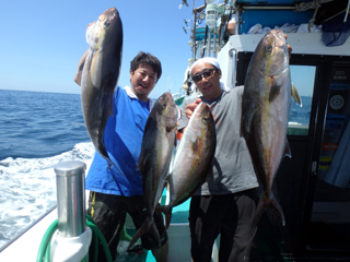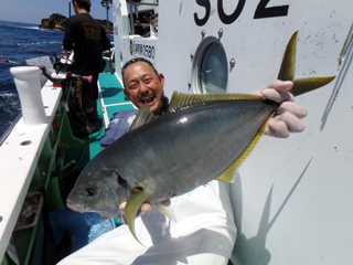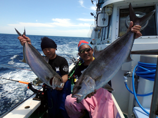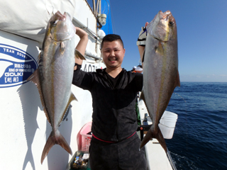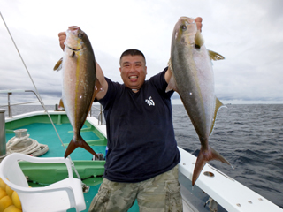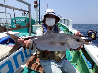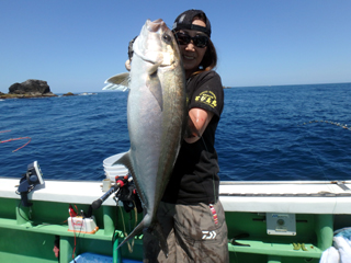 05/09 銭洲 18.9℃薄濁り 極の会仕立 カンパチ1.5-5.15kg0-6計6本、オナガ1.2kg頭に1-5計20本、ウメイロ五目30-40cm級12-30枚 多種多彩になってきました。中ムロ回遊中ですねー^ ^