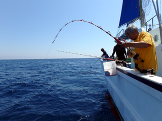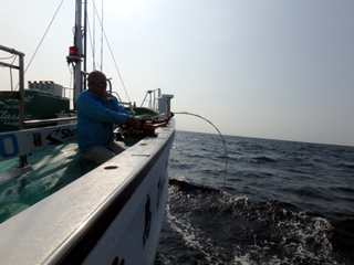 05/25 銭洲 21.2℃澄み加減 仕立 カンパチ1.35-1.7kg計3本、メダイ4.8-7.55kg計2本 泡潮入り、苦戦しました。次回に期待し、探索続けます!未知なる挑戦!