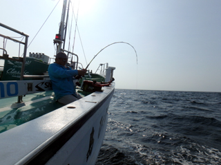 05/30 銭洲 19.6℃濁り カンパチ1.0-4.0kg1-6計13本、シマアジ3.5kg級1枚、ウメイロ五目35-40cm級12-38枚 冷凍イカ、ムギイカで攻めました。大型には、ハリスちぎられてます。モロコか?