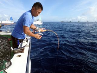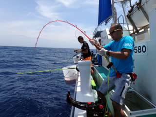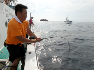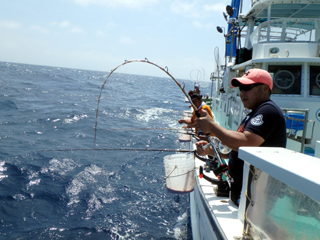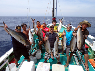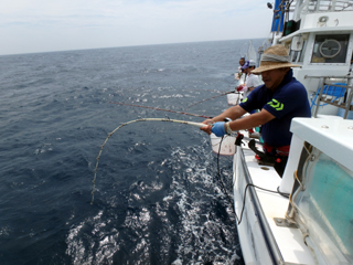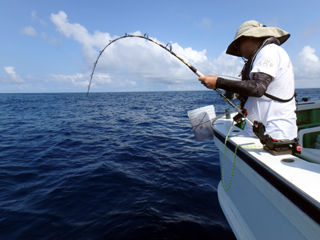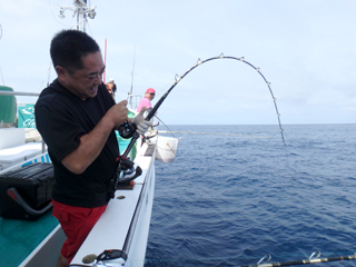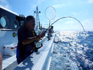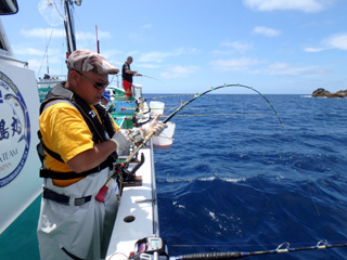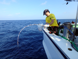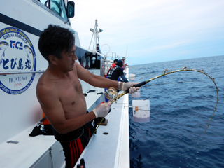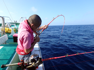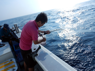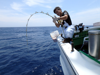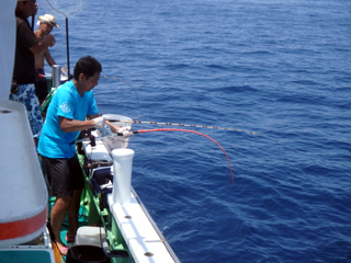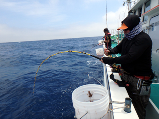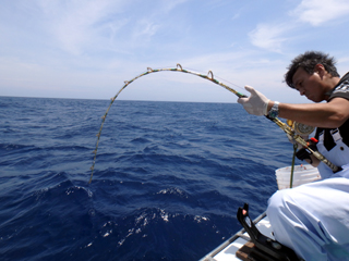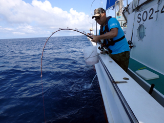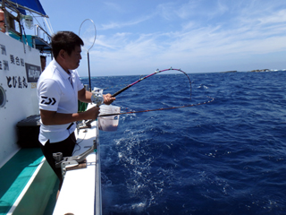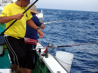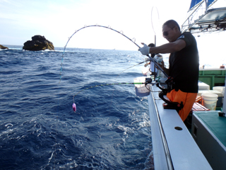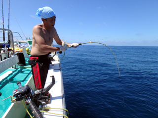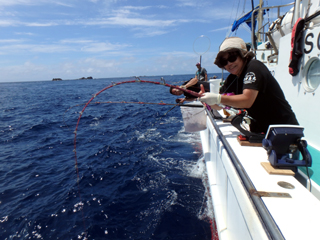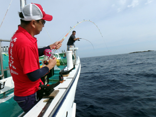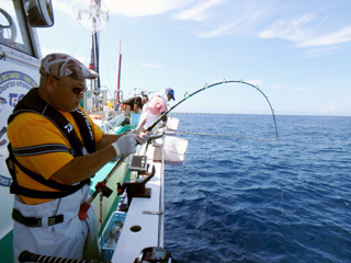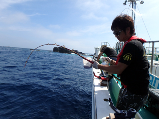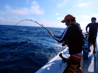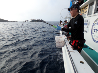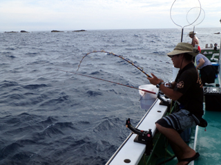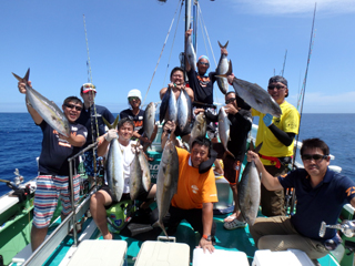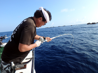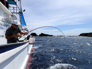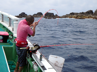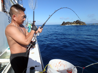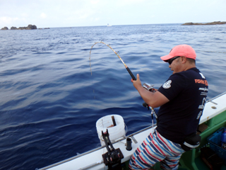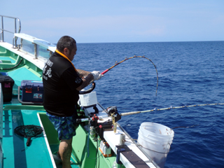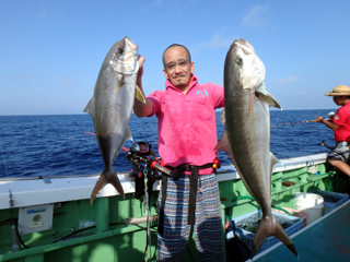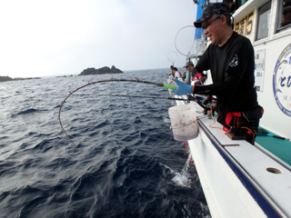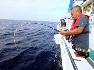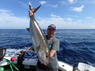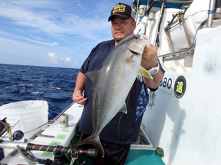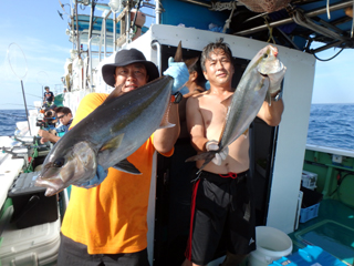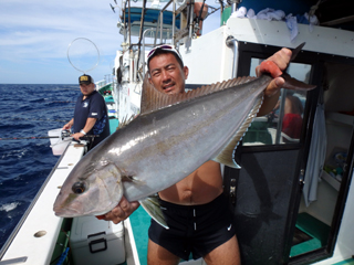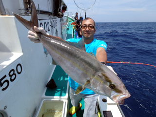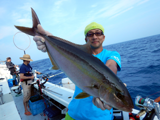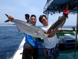 07/15~16 大人の遠足part① 銭洲26.8℃濁り-イナンバ26.5℃薄濁り-銭洲26.5℃薄濁り カンパチ2.35-7.7kg1-7計24本、ヒラマサ3.9-16.35kg0-1計3本、モロコ20.0kg1本 東京都K様モロコ20.0kgGET、唐獅子様ヒラマサ16.35kgGETおめでとうございます! 身体ごと持っていかれそうな超大物ヒット!PE12号切れ!お疲れ様でした。