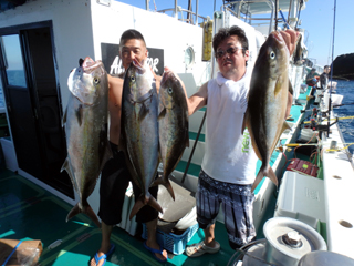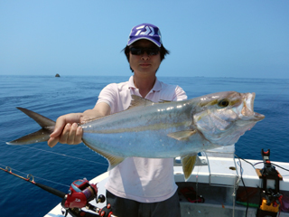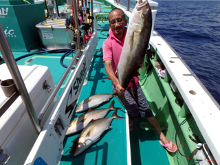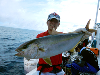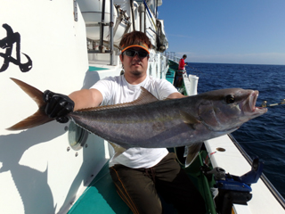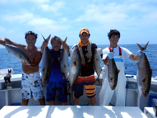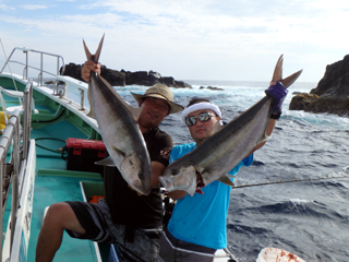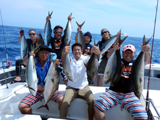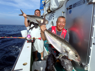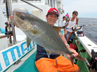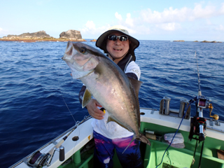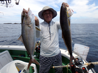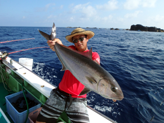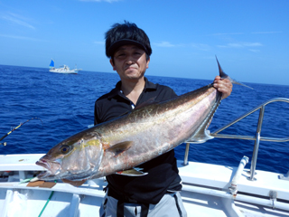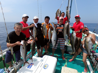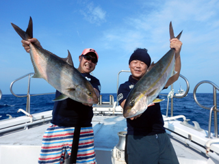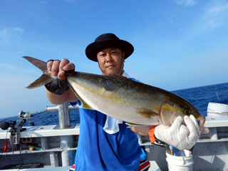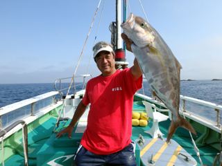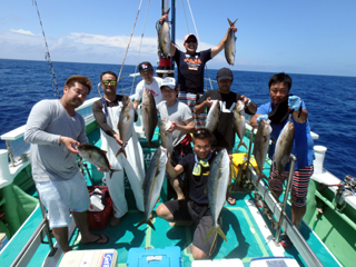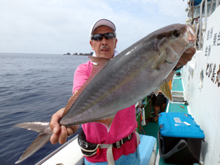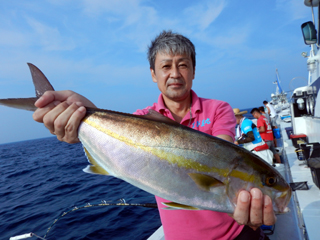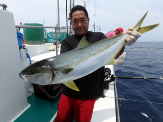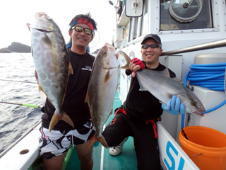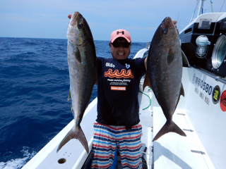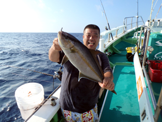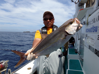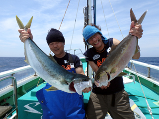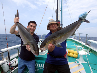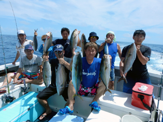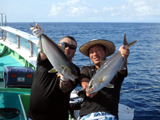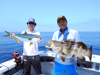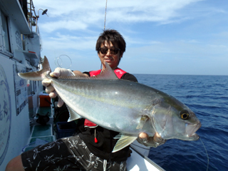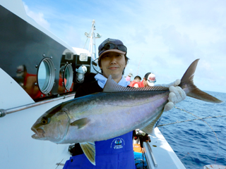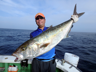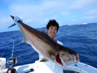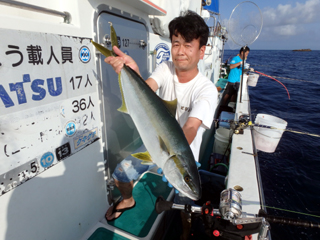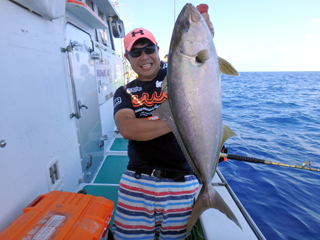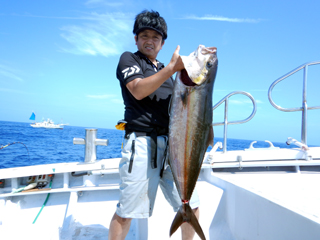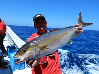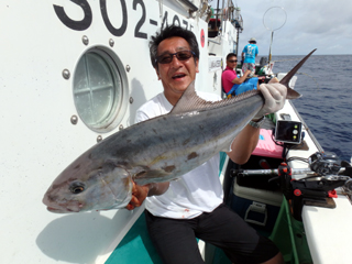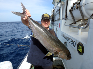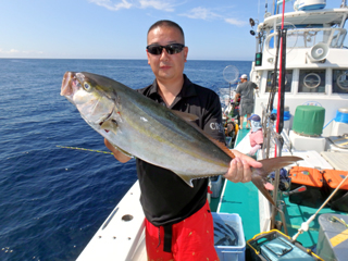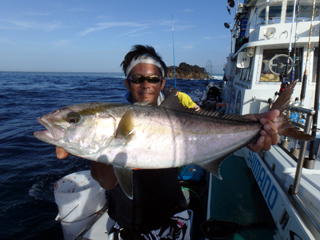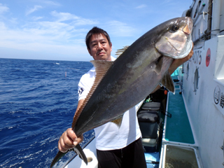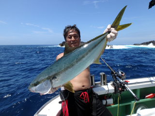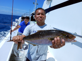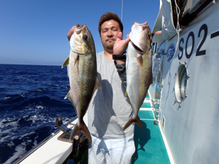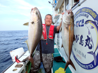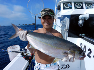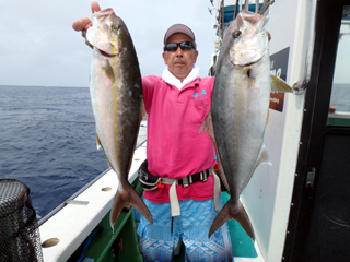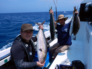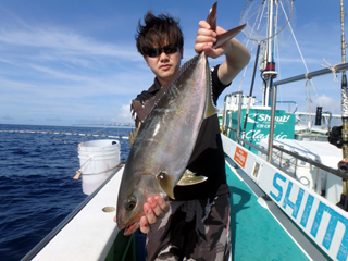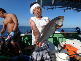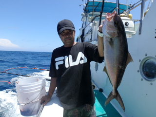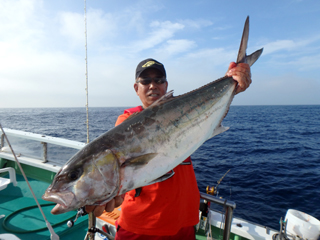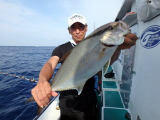 カンパチ2.1-5.25kg0-5計10本、ヒラマサ3.3-9.45kg2本、ハガツオ6.6kg1本、本カツオ、ウメイロ 本日も好調でした!