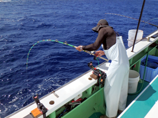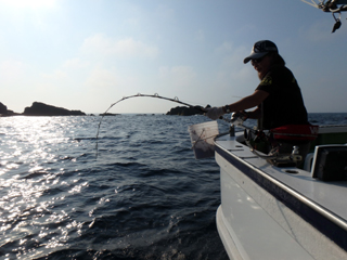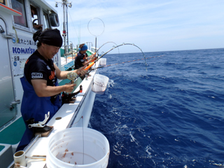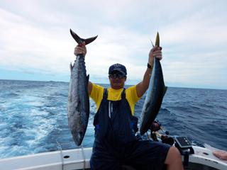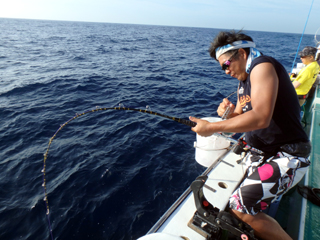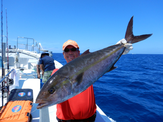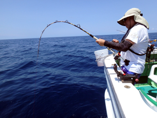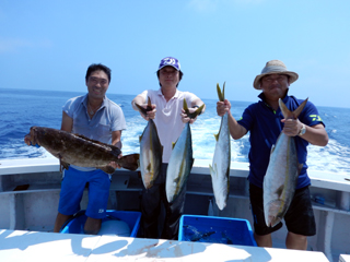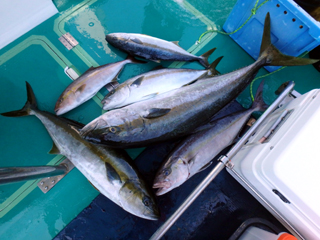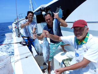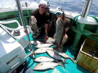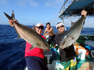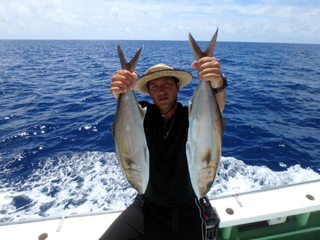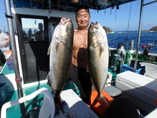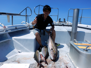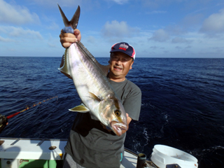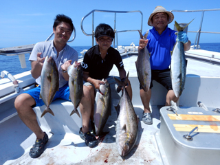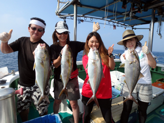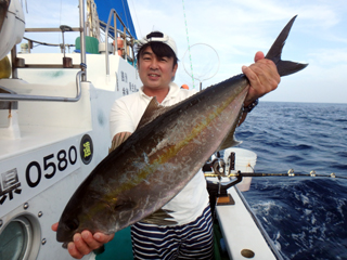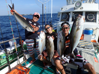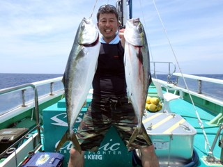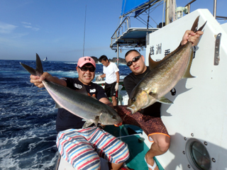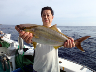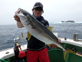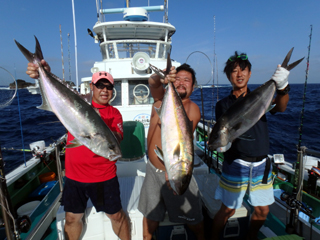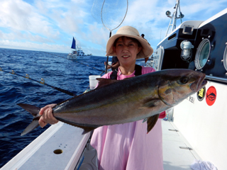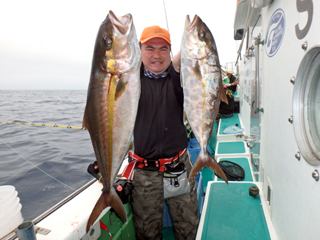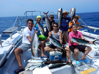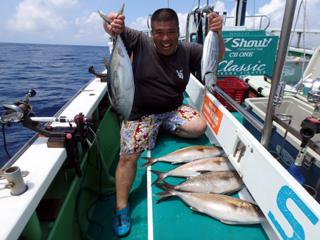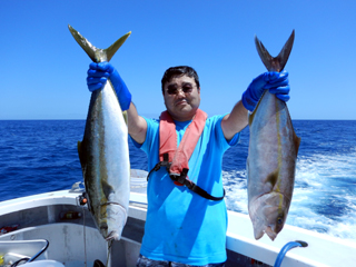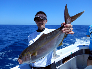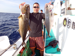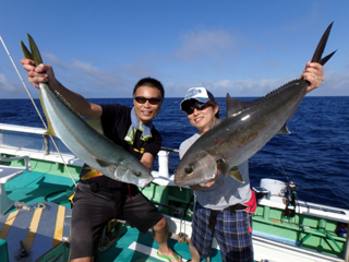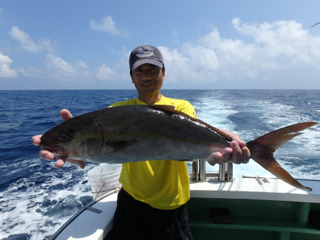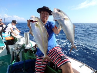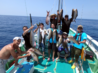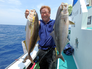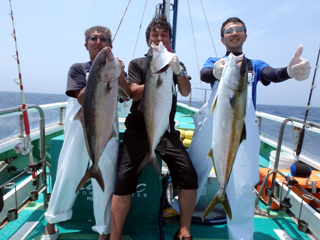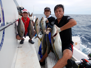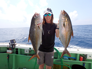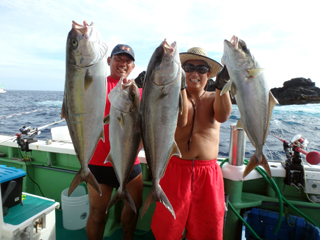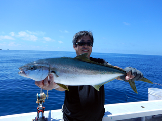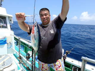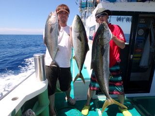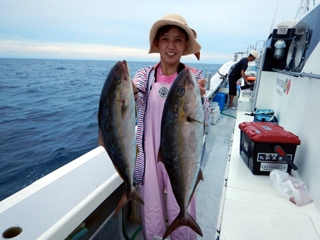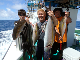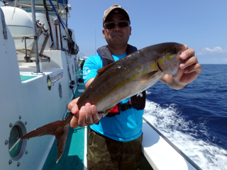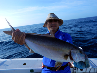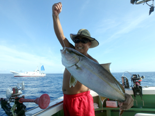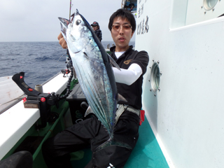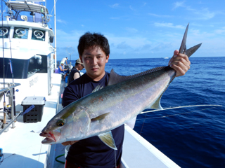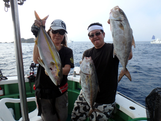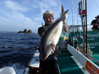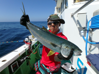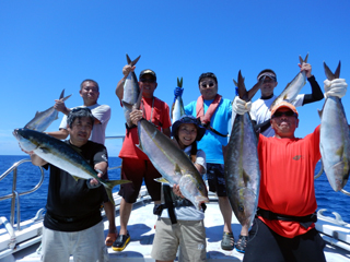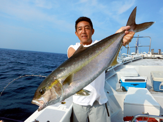 カンパチ2.1-5.25kg0-5計10本、ヒラマサ3.3-9.45kg2本、ハガツオ6.6kg1本、本カツオ、ウメイロ 本日も好調でした!