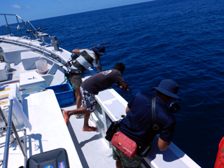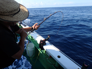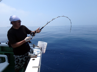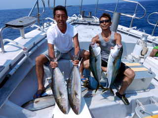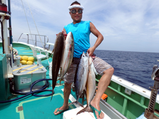 07/19 イナンバ 27.5℃薄濁り キメジ2.65kg0-1計1本、カツオ1.1-3.65kg1-2計3本、メダイ2.5-4.65kg2-3計5本 朝方、ボッコんボッコんにキハダマグロ跳ねてました!