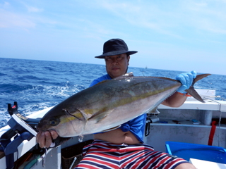 07/09 銭洲 25.4-26.2℃澄み加減 カンパチ2.45-5.5kg0-1計3本、ヒラマサ2.85-5.35kg0-2計3本、ウメイロ五目30-35cm級トップ20枚以上 ルアーカンパチ1.2kg1本、ルアーヒラマサ2.85-4.45kg2本、ルアーハガツオ3.75kg1本 決め手はエサですね。チビムロ渋い時は、サビキに工夫が必要です。
