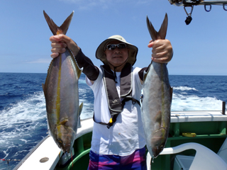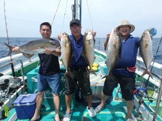 07/17 銭洲 25.0℃澄み~濁り カンパチ2.0-6.35kg14本、ヒラマサ2.9-3.6kg8本、ウメイロ 本日も当たり多く好調でした!