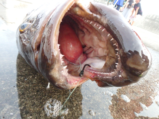 ガチンコ二期生、東京都O様、モロコ35.5kg137cmGETおめでとうございます! ロッド:Alligator CRAZY165SS リール:Alligator BATTLE12 道糸:YGK ウルトラ2 15号 リーダー:FishingKINGオリジナル60号 ハリス:FishingKINGオリジナル80号 ハリ:FishingKINGオリジナル クエHSP40号