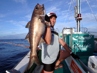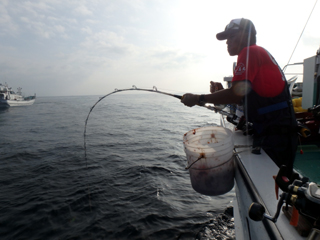 08/13 銭洲 25.0℃薄濁り カンパチ2.3kg1本、ヒラマサ3.75kg1本、ウメイロ五目25-35cm級頭21枚