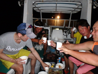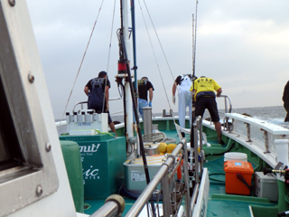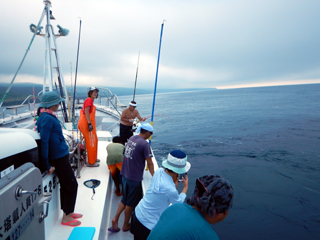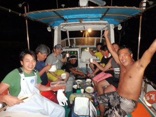 08/05~06 大人の遠足part④ 銭洲26.3℃澄み-イナンバ27.2℃薄濁り-銭洲24.2℃薄濁り カンパチ2.0-9.6kg0-3計12本、クロムツ3.9-8.4kg0-2計4枚、ハタ9.3kg、キメジ5.75kg、カツオ2.95kg、メジナ3kg 台風の影響ナッシングです^ ^夜は、ジャズを聴きながら、おシャンティ〜〜に、船上バーベキュー!!!