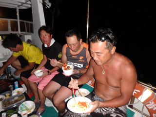 08/12~13 大人の遠足part⑤ 銭洲25.3℃薄濁り-イナンバ26.4℃薄濁り-銭洲25.2℃澄み カンパチ2.15-6.25kg0-2計7本、クロムツ2.75-4.85kg0-1計2本、ハタ9.25kg1本 船上バーベキューで盛り上がって来ました^ ^