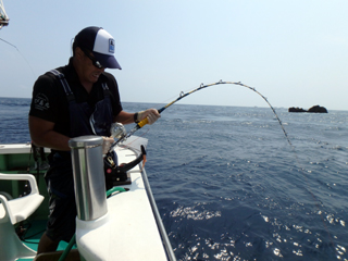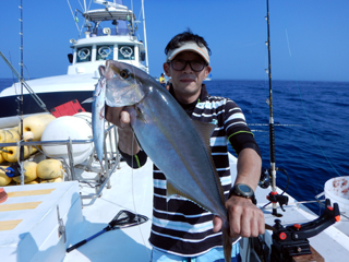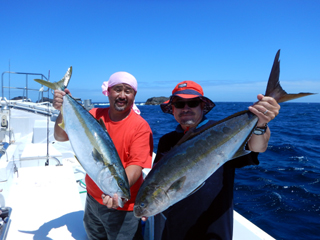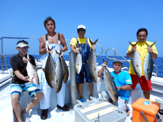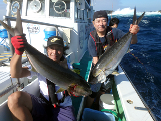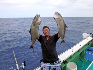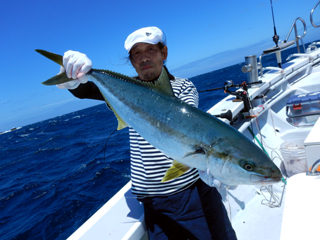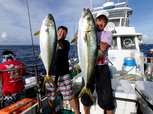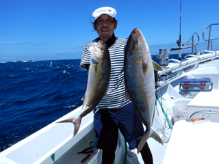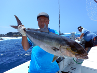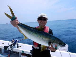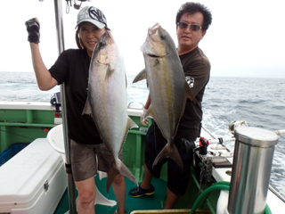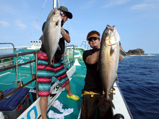 08/06 銭洲 26.4℃薄濁り カンパチ2.35-6.75kg0-3計8本、ヒラマサ3.6kg1本、ハガツオ3.85kg、ツムブリ3.15kg ウネリもたいしたことなく良い凪でした。